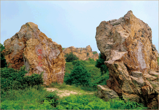 阳山顶有两块相向而对的峰石,犹如一对情侣交颈相拥,卿卿唧唧,不离不弃。