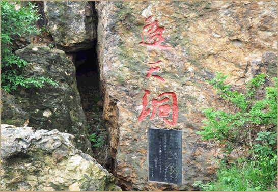 又称仙人洞。洞口狭隘,仅容人扁身而入,洞中宽大,可直立行走,深40余米,有一20余米竖式井洞透光,故称“透天洞”。1947年,中共锡西武南地下党在洞中召开整风会议,是革命传统教育基地。《桃花源续记》云:渔人复寻桃花源,误入仙人洞,寻至阳山桃花源。